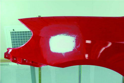 ⑤用上一步的方法,對(duì)整個(gè)面進(jìn)行收邊,使原子灰的邊緣薄,原來(lái)中間凹坑區(qū)域飽滿。如圖2-46所示。