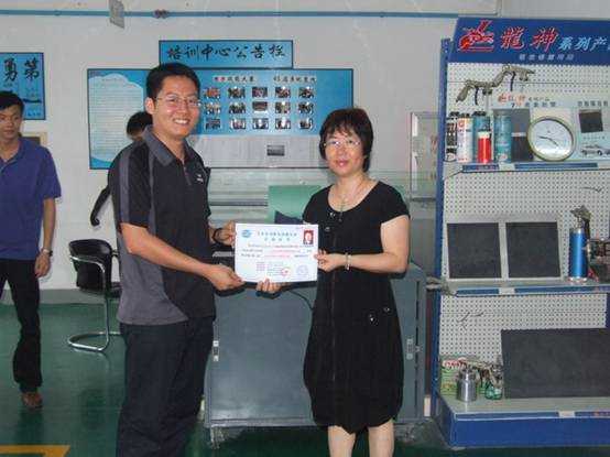 彭經(jīng)理頒發(fā)“汽車車身修復(fù)技能認證合格證書”