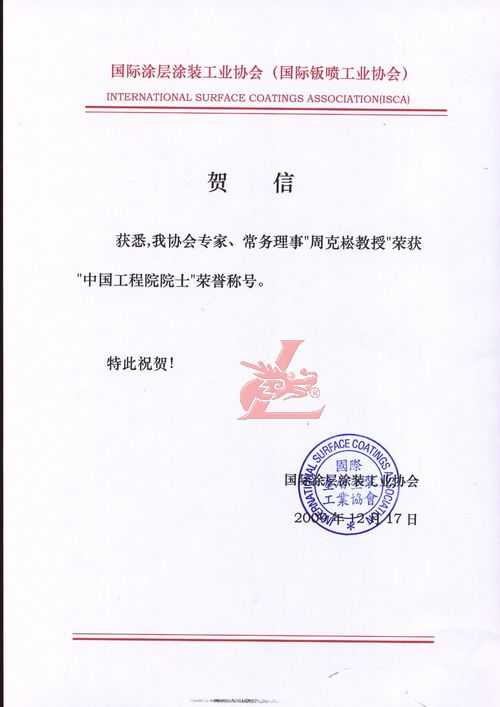 賀國(guó)際涂層涂裝工業(yè)協(xié)會(huì)專(zhuān)家常務(wù)理事克崧教授榮獲“中國(guó)工程院院士”[龍神秘書(shū)單位處] 賀國(guó)際涂層涂裝工業(yè)協(xié)會(huì)專(zhuān)家常務(wù)理事克崧教授榮獲“中國(guó)工程院院士”[龍神秘書(shū)單位處] 珠海龍神有限公司秘書(shū)處賀 2009-12-19 8758