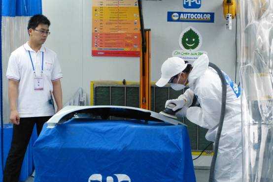 國(guó)賽展位龍神現(xiàn)場(chǎng)演示保險(xiǎn)杠修復(fù)