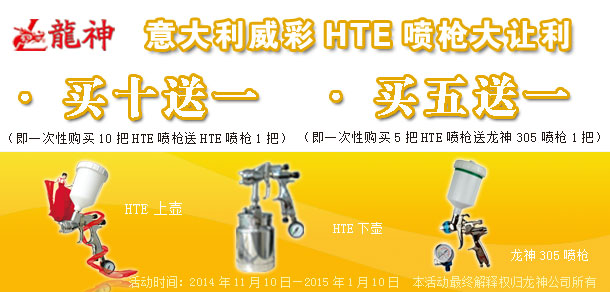 2、買(mǎi)五送一(即一次購(gòu)買(mǎi)五把HTE噴槍送一把龍神305噴槍)