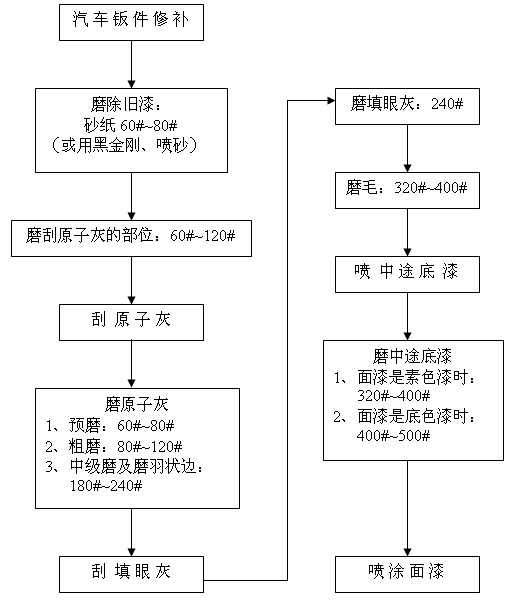 汽車修補干磨程序及砂紙的選擇 備注: 1、除舊漆時采用黑金剛配除漆除銹機能夠快速地除去平面、狹縫及凹凸不平表面的舊漆與銹漬;采用噴砂槍噴砂還可以很快地去除某些孔隙、縫隙或手都很難伸進去的部位的舊漆與銹斑; 2、在磨填眼灰、中途底漆和尤其有邊角位、弧度位的表面時配打磨緩沖墊(置于圓盤砂紙和托盤之間)能夠使打磨作業(yè)更加順暢,并能獲得規(guī)則的表面質(zhì)量。 2007-08-25 12037