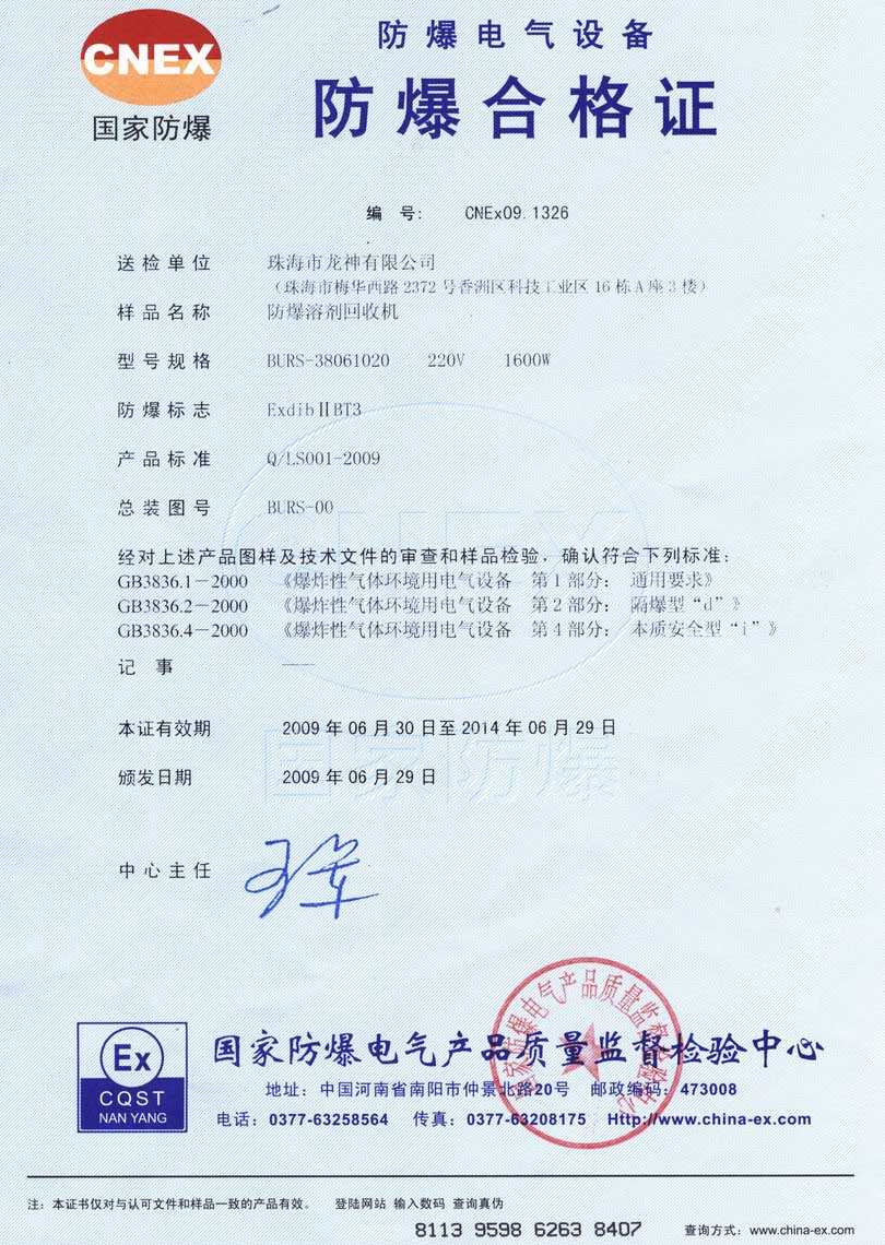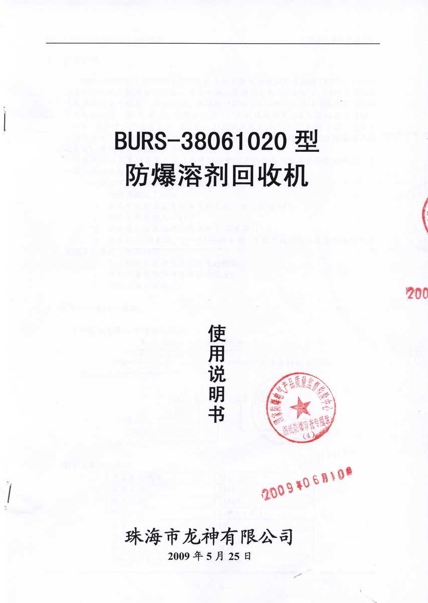 防爆認(rèn)證 防爆溶劑回收機(jī)防爆合格證 BURS系列防爆溶劑回收機(jī)技術(shù)條件 BURS-38061020型防爆溶劑回收機(jī) 使用說(shuō)明書 BURS-38061020型防爆溶劑回收機(jī) 圖紙資料 (以上圖片均可點(diǎn)擊放大) 2012-11-27 34290
