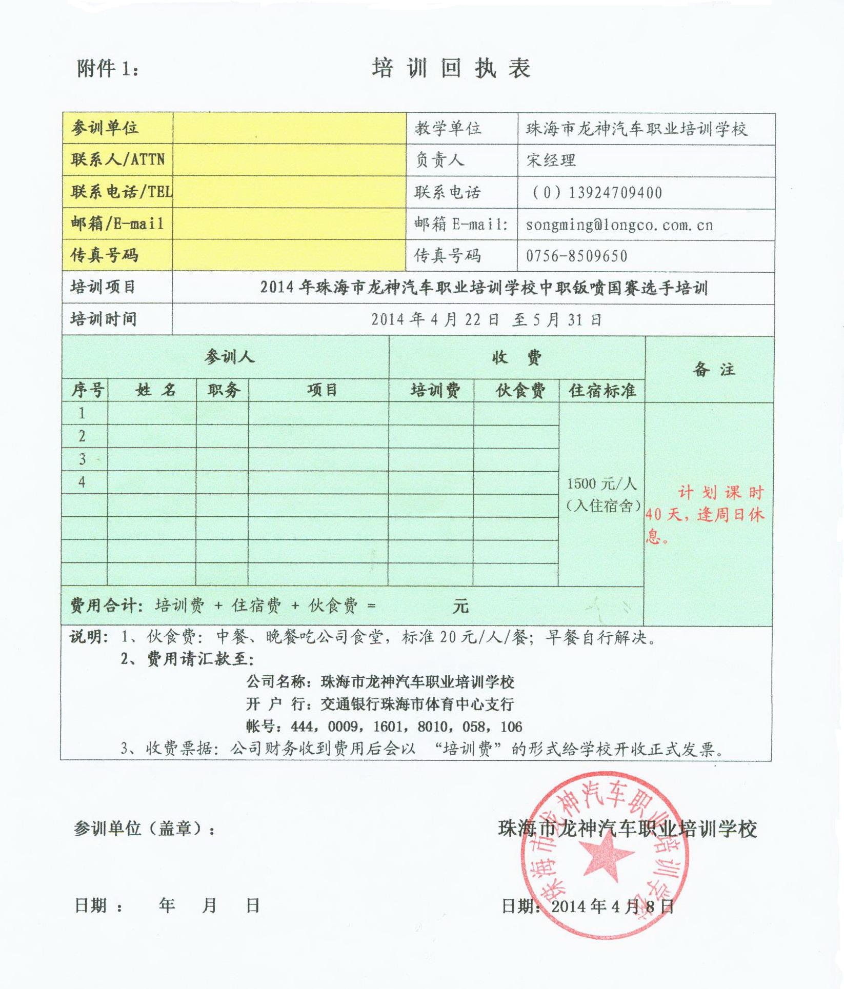 自2009開始與國內(nèi)眾多知名汽車品牌合作,為其培養(yǎng)鈑噴專業(yè)技術(shù)培訓(xùn)師及站點(diǎn)維修專業(yè)人員。2013年申請?jiān)O(shè)立了“珠海市龍神汽車職業(yè)培訓(xùn)學(xué)?!保楹J旋埳衿嚶殬I(yè)培訓(xùn)學(xué)校是珠海市人力資源與社會(huì)保障局和珠海市民政局批準(zhǔn)的專業(yè)辦學(xué)機(jī)構(gòu)。它的前身是珠海市龍神鈑噴培訓(xùn)中心,該學(xué)校占地面積約1500多平方米,專業(yè)系統(tǒng)性強(qiáng),引領(lǐng)國內(nèi)最先進(jìn)的鈑噴設(shè)備與模塊化的工藝流程。